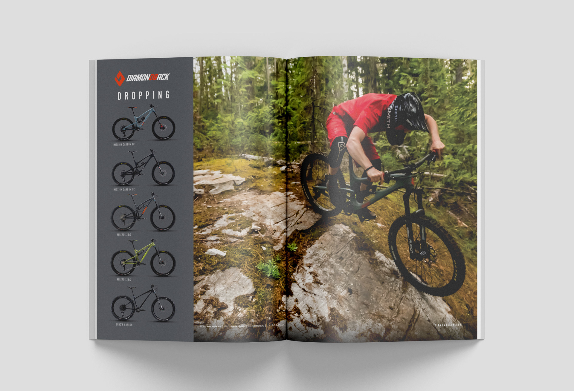 A special ad showcasing Diamondback's new Mission Carbon bikes, and three other brand new bicycles. This was printed in the back inside cover spread of Freehub Magazine, in their May 2019 Crankworx issue.