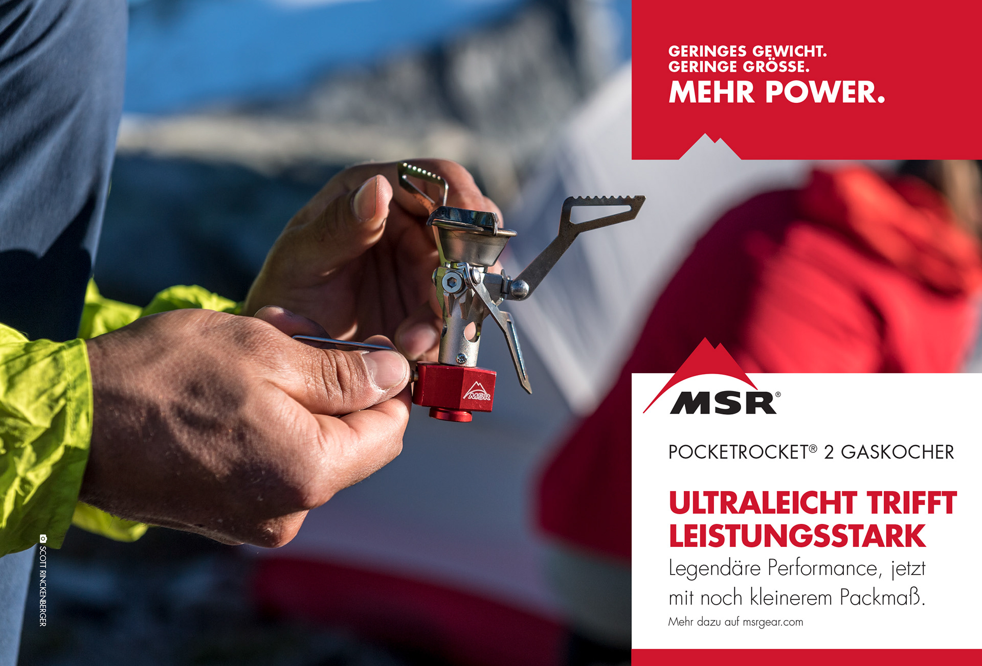 I produced web ads for use in different language markets for the MSR Pocket Rocket 2, contracting out for language translation, text layout, and choosing photo assets. These ran in markets across Europe.